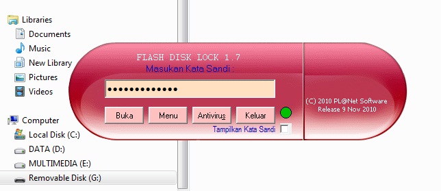 Untuk dapat akses ke Flash Disk diperluin password. Flash Disk Lock ini