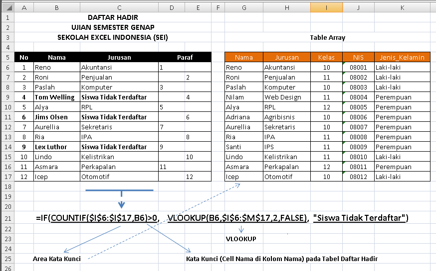 nilai #N/A!. Error ini terjadi karena Excel menganggap tidak ada data yang match